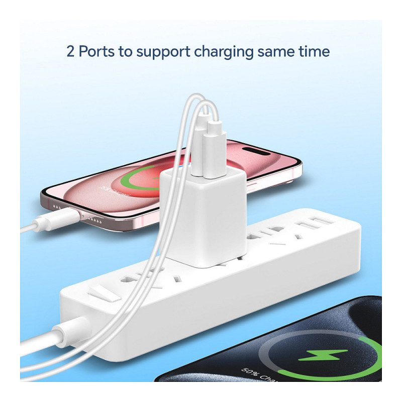 This charger leverages advanced Gallium Nitride (GaN) technology to deliver up to 20W of total power, ensuring faster and more efficient charging. It features a versatile port selection with 1 USB-C port supporting USB Power Delivery (PD) 3.0 and 1 USB-A port with Quick Charge (QC) 3.0, allowing simultaneous charging of multiple devices with varying power needs. The charger supports a wide range of output options from 3.3V to 12.0V, making it compatible with everything from smartphones to laptops. Enhanced safety is provided through built-in protections against overload, short circuiting, and overheating. Additionally, it incorporates USB Power Delivery (PD) 3.0 and Quick Charge (QC) 3.0 technologies, along with Programmable Power Supply (PPS) compliance, to ensure rapid charging while optimizing efficiency and minimizing heat generation.