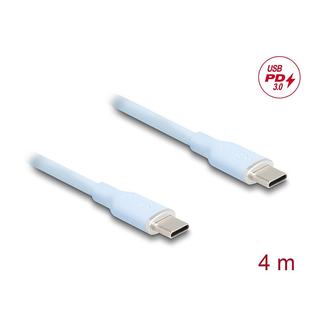 "DeLOCK 81236. Cable length: 4 m. Connector 1: USB C, Connector 2: USB C, USB version: USB 2.0, Maximum data transfer rate: 0.48 Gbit/s, Connector contacts plating: Gold, Product colour: Blue"\n"This USB cable by Delock enables the connection between a device with a USB Type-C™ connector and a PC or a laptop equipped with a free USB Type-C™ port.