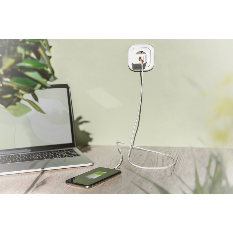 Idealiai tinka išmaniesiems telefonams, planšetėms, nešiojamiems garsiakalbiams, ausinėms ir kitiems USB įkrovimą palaikantiems prietaisams. Dėl kompaktiško dizaino jis lengvai telpa tiek į kelioninį krepšį, tiek į elektros lizdą namuose ar biure.