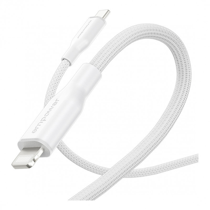 The empower by PanzerGlass® Racing USB-C to Lightning Cable features an ultra-soft and durable silicon interior paired with a braided outer cable sheath for durability and a premium feel. Convenience is key. Keep the cable organized when not in use with a handy strap. And the best part? It's made from 100% post-consumer recycled (PCR) materials.