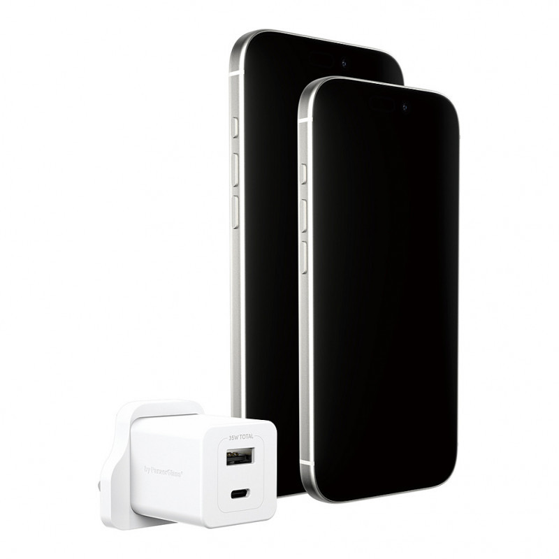 "PanzerGlass empower™ by ® Turbo 35W Charger incl. USB-C + USB-A | UK Plug| Silver White. Product colour: White"\n"FAST CHARGE