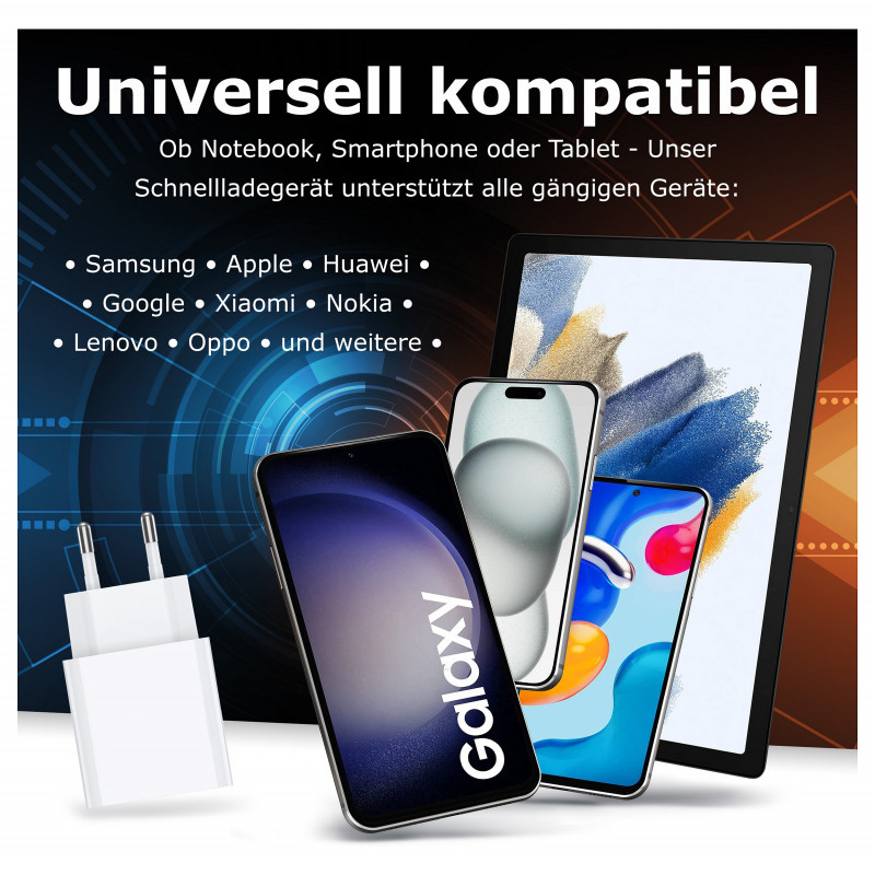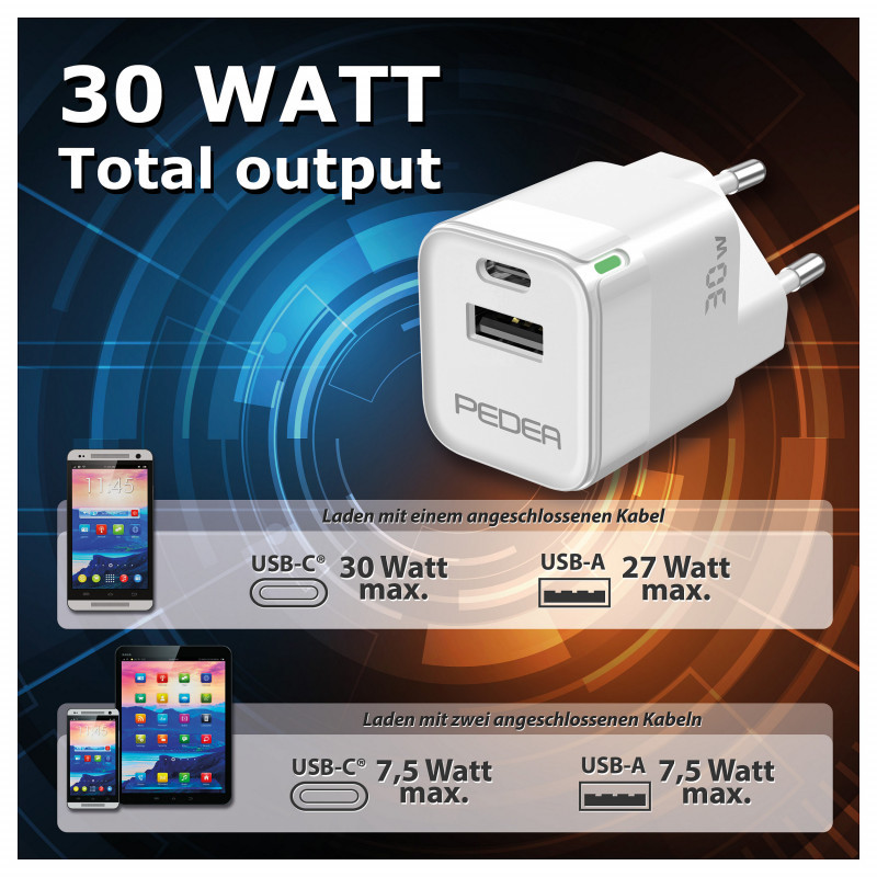 PEDEA 30W USB-C (PD) Schnellladegerät - 2-Ports Mehrfach Handy-Ladegerät mit USB-C und USB-A, weiß
