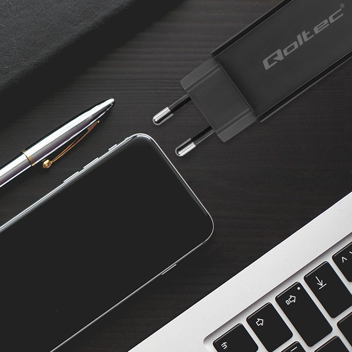 Qoltec 52419 65W GaN itin greitas įkroviklis| 5-20V | 3-3,25A | USB-C 3.1