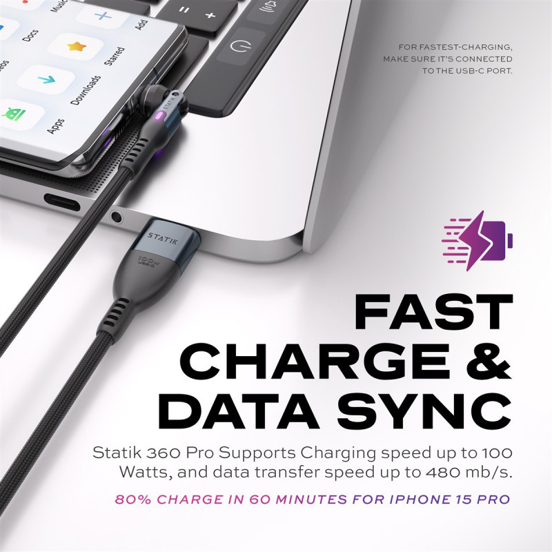 STATIK Statik 360 Pro Cable 2.0 USB-C Only; 1m, Black