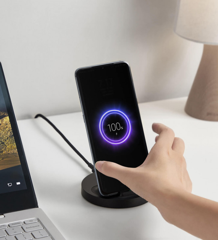 Xiaomi Mi 20W Wireless Charging Stand, Black – kompaktiškas ir patogus belaidis įkrovimo stovas, skirtas greitam ir efektyviam jūsų išmaniųjų įrenginių įkrovimui. Su 20 W galia įrenginiai įkraunami greitai, o stovo dizainas leidžia patogiai naudoti telefoną žiūrint vaizdo įrašus ar skambinant per hands-free funkciją.