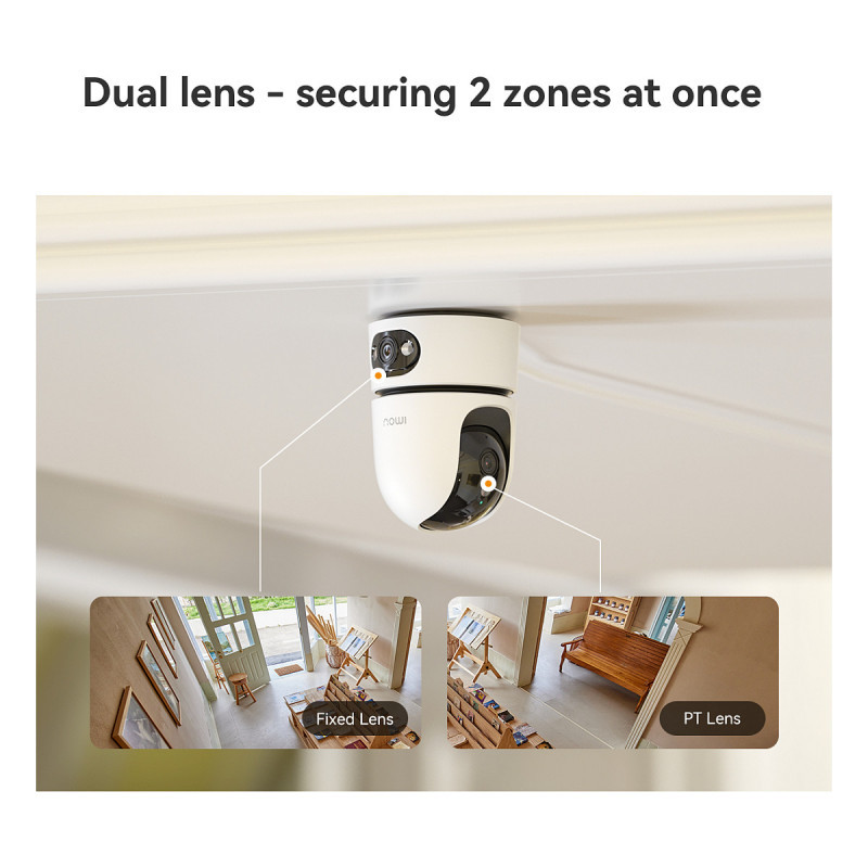 Ranger Dual Pro 's pan-tilt lens supports 0°-355° horizontal rotation and 0-90° vertical rotation, while the fixed lens supports 15° vertical rotation to protect your home 360°.