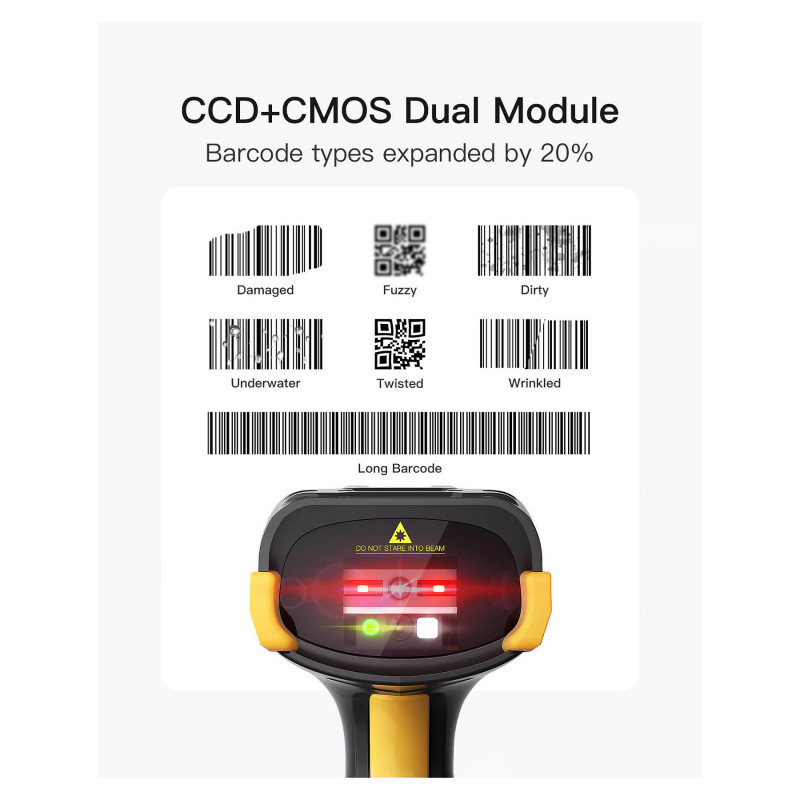 Larger Scanning Range: Pro 8 utilizes CMOS+CCD dual modules, capable of recognizing high-density small barcodes and all common long 1D barcodes, like Code128 barcodes up to 99 bytes/316mm.