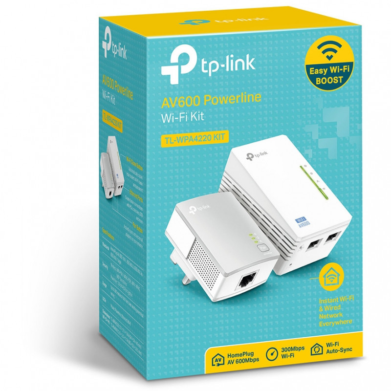 "TP-Link Powerline 600 Wi-Fi Extender Starter Kit. Maximum data transfer rate: 600 Mbit/s, Networking standards: IEEE 802.11b, IEEE 802.11g, IEEE 802.11n, IEEE 802.3, IEEE 802.3u, Ethernet LAN interface type: Fast Ethernet. Power consumption (typical): 7.2 W, Power consumption (standby): 4.6 W. Product colour: White, Antenna type: Internal, Certification: CE, FCC. Windows operating systems supported: Windows 2000, Windows 2000 Professional, Windows 7 Enterprise, Windows 7 Enterprise x64, Windows 7..., Mac operating systems supported: macOS. Width: 94 mm, Depth: 54 mm, Height: 69.5 mm"\n"- One Touch Super Range Extension - Wi-Fi Clone Button simplifies your Wi-Fi configuration and helps build a seamless unified home network