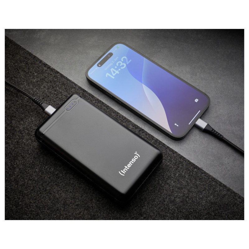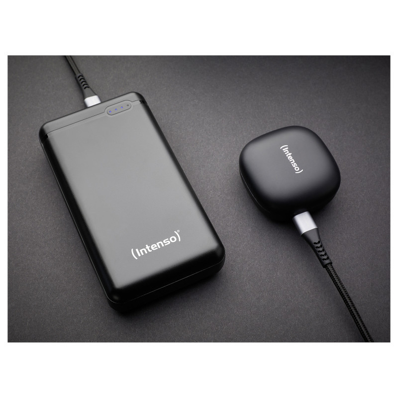 "Intenso XS20000. Battery capacity: 20000 mAh, Battery technology: Lithium Polymer (LiPo), Battery voltage: 3.1 V. USB Type-A output ports: 1, USB Type-C ports quantity: 1. Output current: 3.1 A. Product colour: Black"\n"Technical standards in a compact design