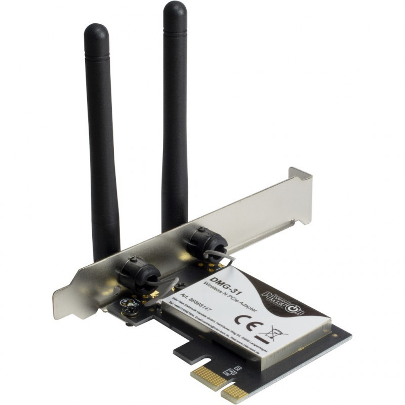 PowerOn's DMG-31 connects desktop computers to a high-speed WiFi network. It is compatible with the 802.11a/b/g/n (WiFi 4) standards and reaches speeds of up to 300Mbps at 2.4GHz via a free PCIe x1 port.