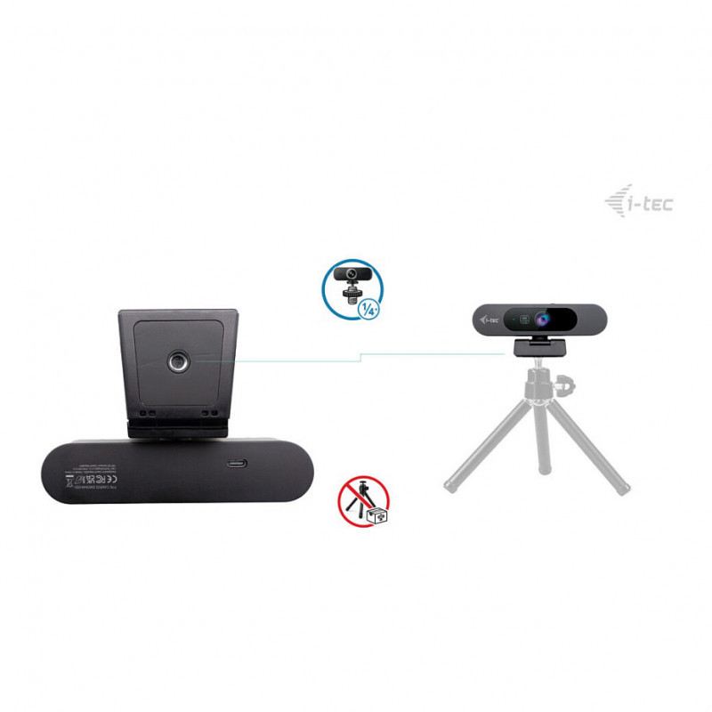 "i-tec SOLOMON PRO 900 4K Webcam. Megapixel (approx.): 8.29 MP, Maximum video resolution: 3840 x 2160 pixels, Camera HD type: 4K Ultra HD. Interface: USB, Product colour: Black, Mounting type: Clip. Mobile operating systems supported: Android, iOS, iPadOS, Other operating systems supported: ChromeOS. Width: 130 mm, Depth: 50.5 mm, Height: 55.5 mm. Cables included: USB Type-C to USB Type-A"\n"The i-tec SOLOMON PRO 900 is the flagship model of the SOLOMON range, designed for demanding professional users. It combines 4K resolution with advanced features such as Auto Framing, WDR, digital zoom, and Picture-in-Picture mode (automatic auto framing intelligently zooms in on the active speaker or person in focus, while Picture-in-Picture keeps the full, un-zoomed scene visible. This ensures clear emphasis on key action without losing overall context).