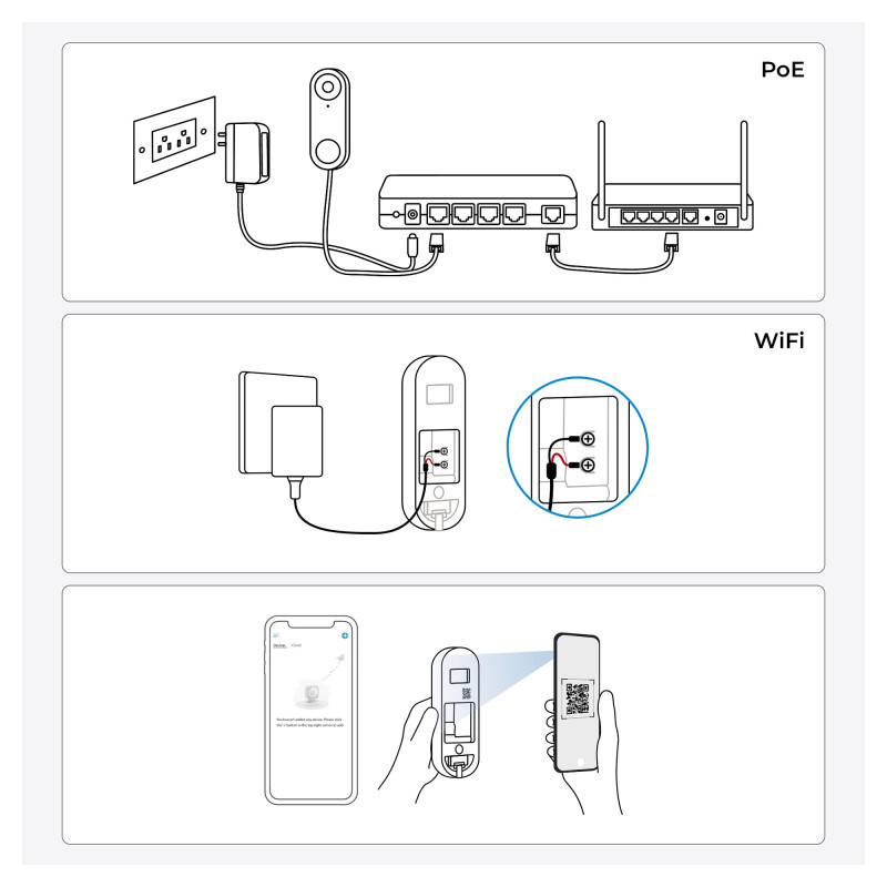 "Reolink D340W - 5MP Video Doorbell with Chime, 2.4/5 GHz Wi-Fi, Person Detection, Two-Way Audio, Works with NVRs. Product colour: Black, White, International Protection (IP) code: IP65, Mounting type: Wall. Compatible memory cards: MicroSD (TransFlash), Maximum memory card size: 256 GB, Video formats supported: H.264. Megapixel (approx.): 5 MP, Maximum video resolution: 2560 x 1920 pixels, Maximum frame rate: 20 fps. Connectivity technology: Wired & Wireless, Wi-Fi standards: 802.11a, 802.11b, 802.11g, Wi-Fi 4 (802.11n), Security algorithms: WPA-PSK, WPA2-PSK. Power source type: DC, Input voltage: 12 - 24 V, AC input frequency: 50/60 Hz"\n"Reolink D340W stands out offering industry-leading 5MP clarity for your front door. It works on both 2.4GHz and 5GHz WiFi bands for a more stable connection. The 3:4 aspect ratio enables a head-to-toe view, so you never miss a detail. Advanced person detection technology alerts you to any person approaching your door, whether it's a visitor or intruder. With up to 256GB microSD card support, store ample footage locally for easy access and peace of mind.