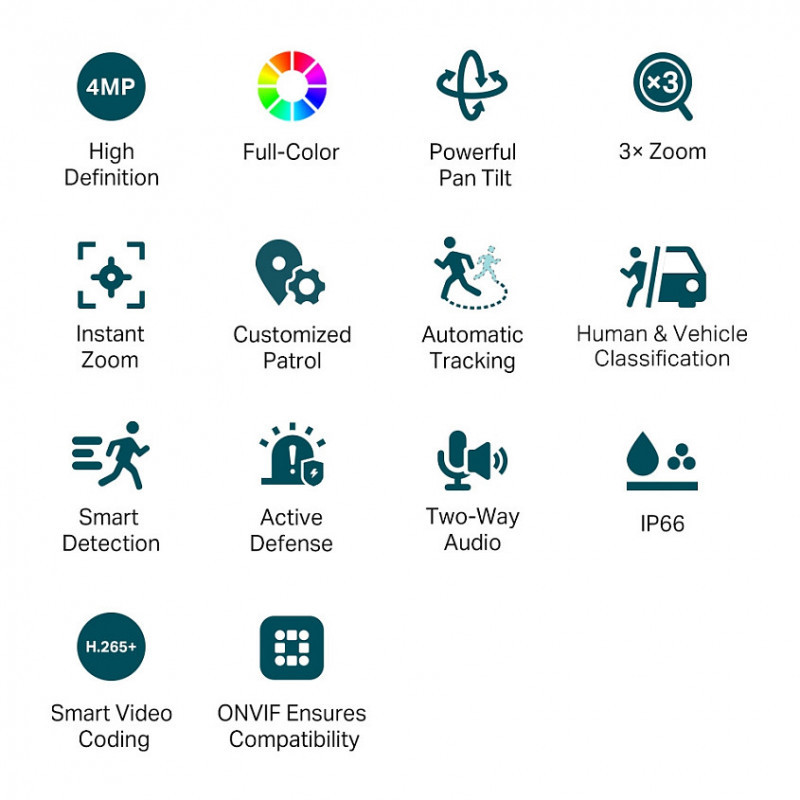 Monitor 24-hour clear and colorful details even in pitch dark night. VIGI Full-Color camera provides maximum 4MP resolutions and ensures colorful monitoring with its large-aperture lens, high-sensitivity sensor, and attached supplemental lights.