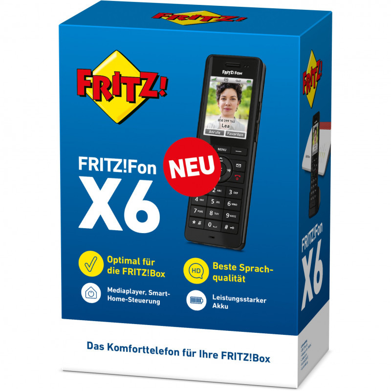 "FRITZ!Fon X6. Type: DECT telephone, Handset type: Wireless handset, Maximum indoor range: 40 m, Maximum outdoor range: 300 m. Phonebook capacity: 300 entries. Product colour: Black"\n