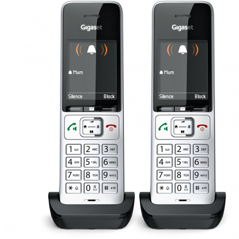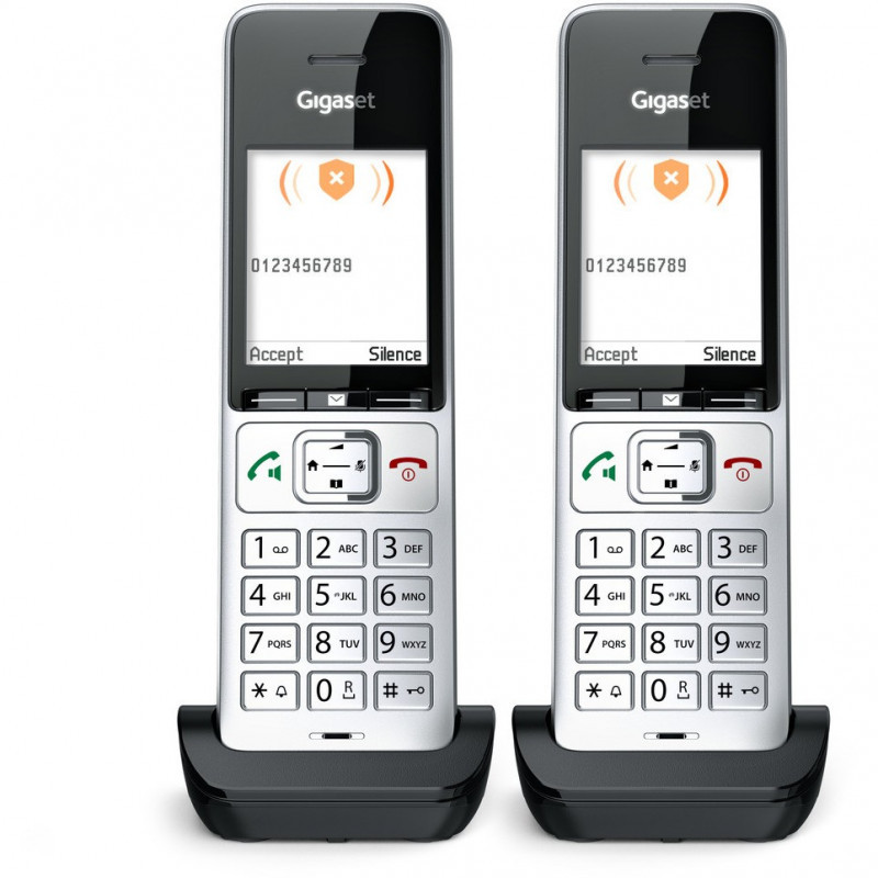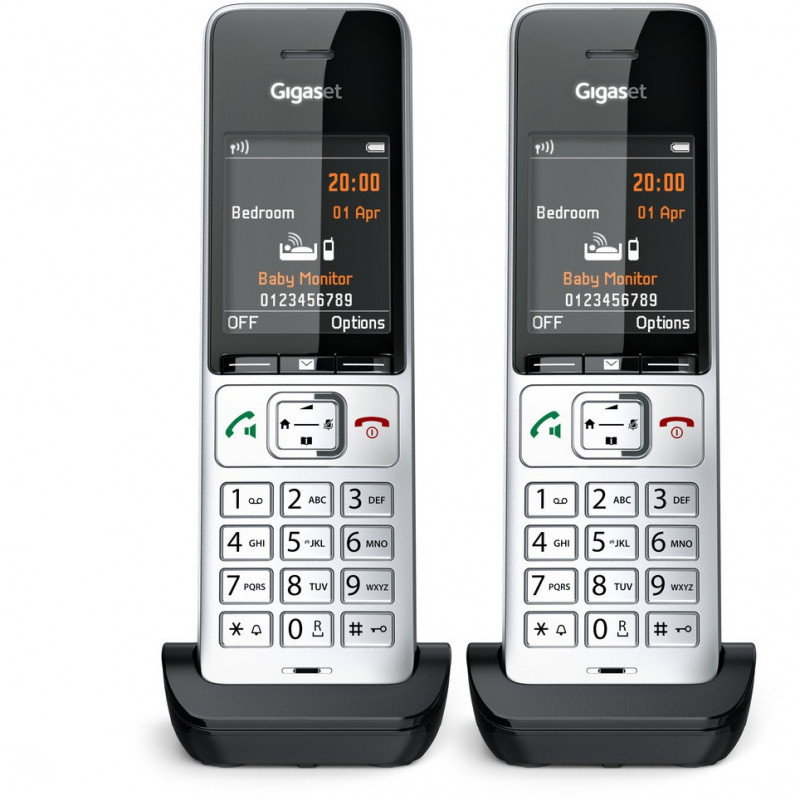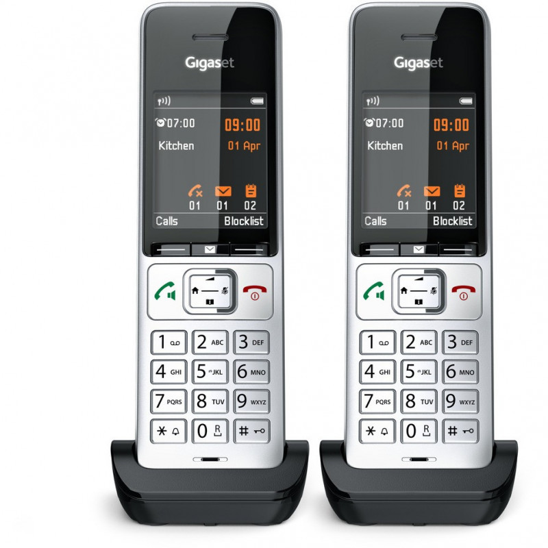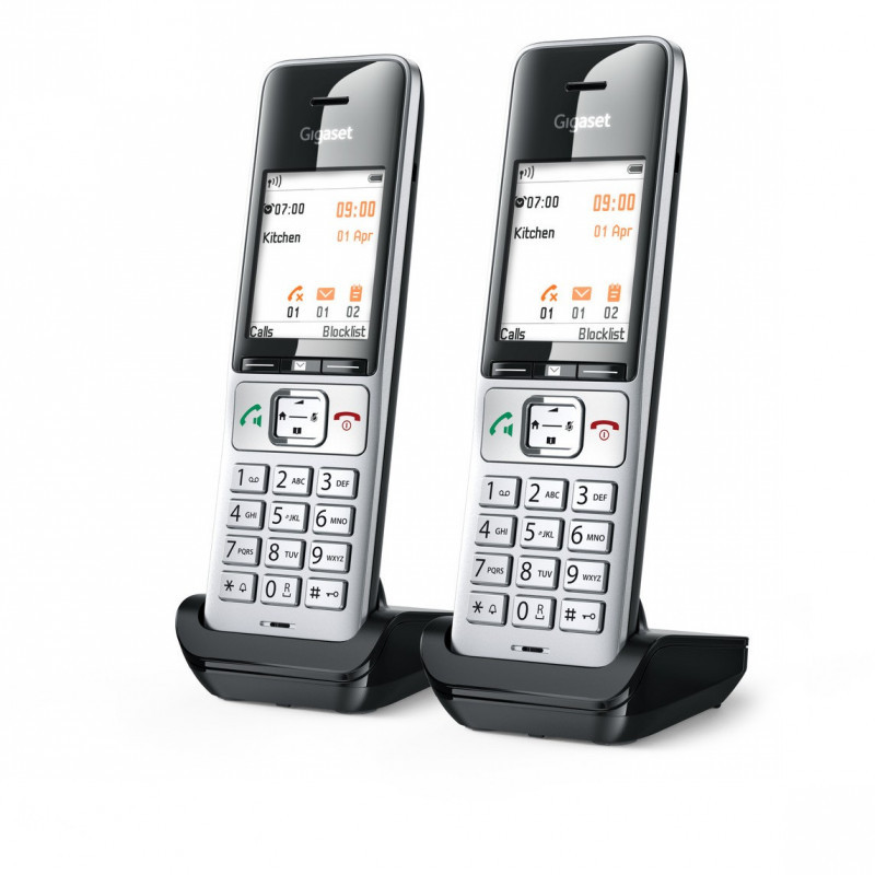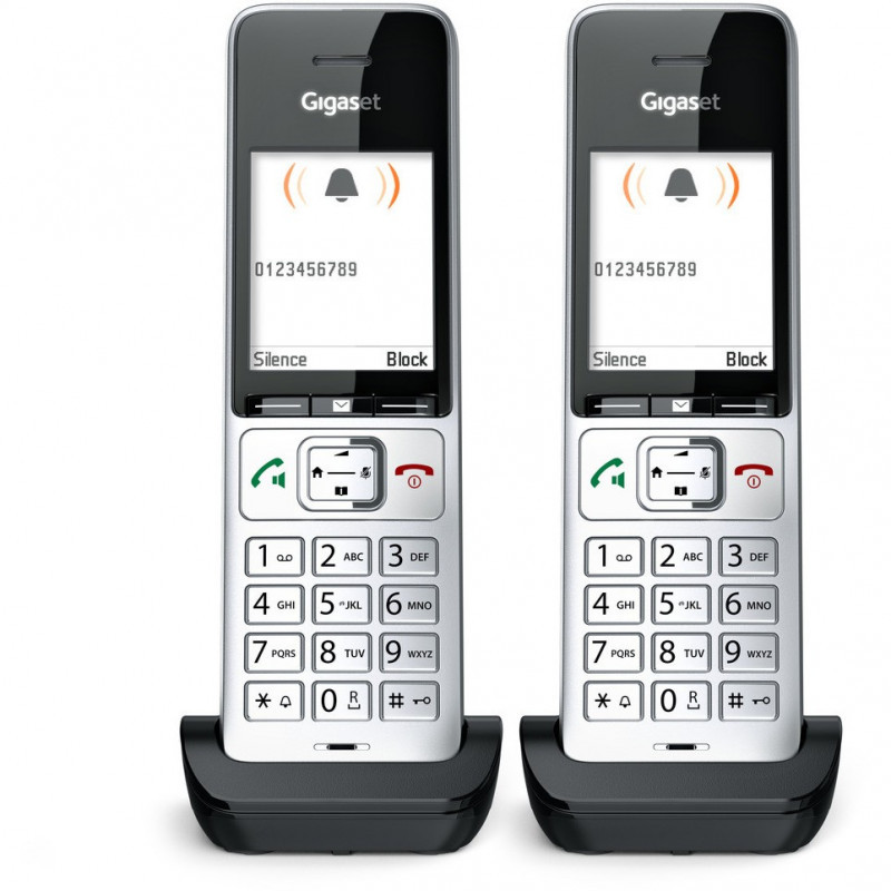 "Gigaset COMFORT 500HX duo. Type: Analog/DECT telephone, Handset type: Wired handset. Speakerphone, Phonebook capacity: 200 entries. Caller ID. Display diagonal: 5.59 cm (2.2""). Product colour: Black, Silver. Number of handsets included: 2"\n"When everything works at the same time: increased convenience when making calls
