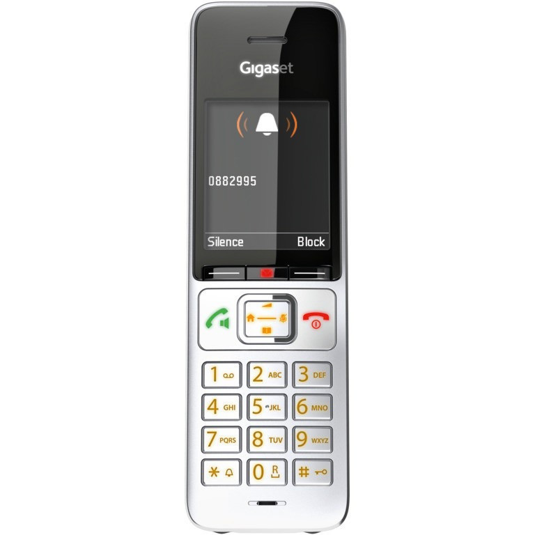 Nothing distracts you from what's important here: The Gigaset COMFORT 500HX is easy and pleasant to use, so you can concentrate fully on your conversations. It meets the highest Gigaset quality standards and navigation is intuitive. The large, high-contrast TFT colour display (44 x 35 mm) offers everything you would expect from a modern cordless phone: Graphics and fonts that ensure optimum legibility, a variety of colour schemes and symbols for operating the main menu. Jumbo mode, which provides an extra-large display of digits when dialling, the illuminated keypad and the large individual keys with noticeable key press ensure that everything can be seen at a glance.