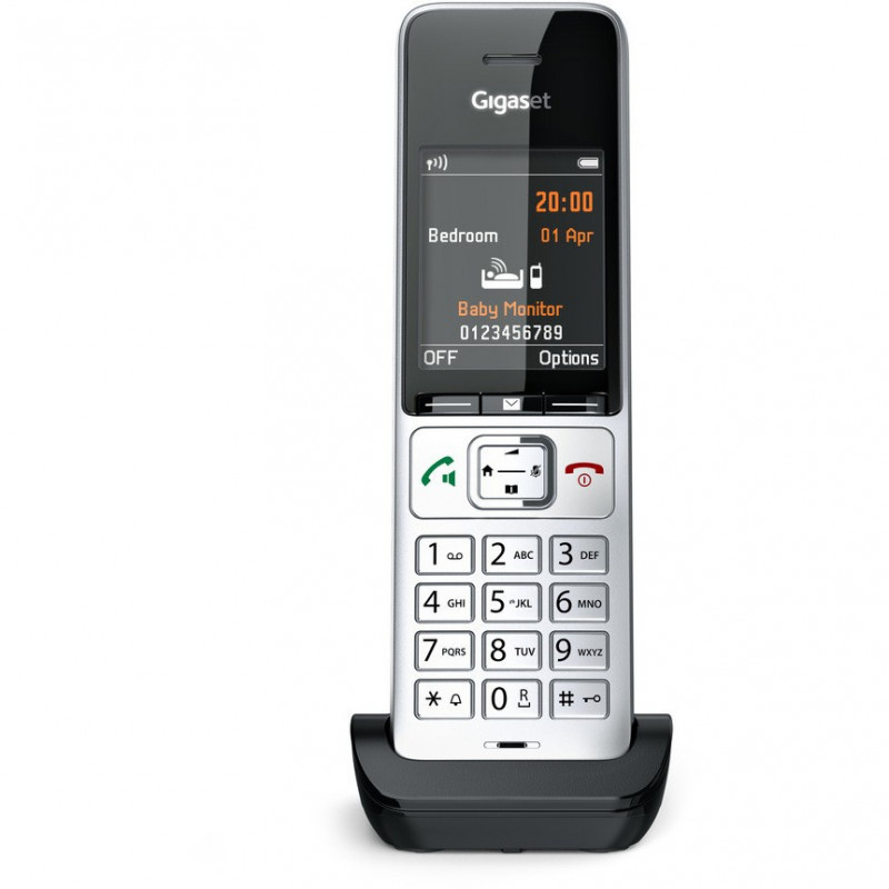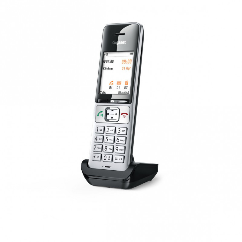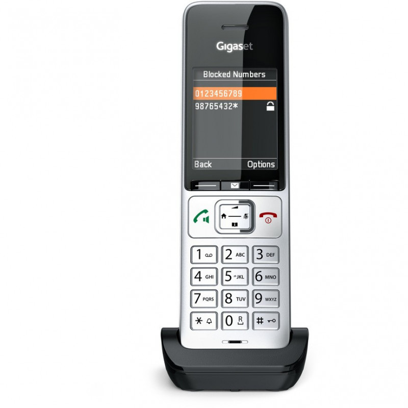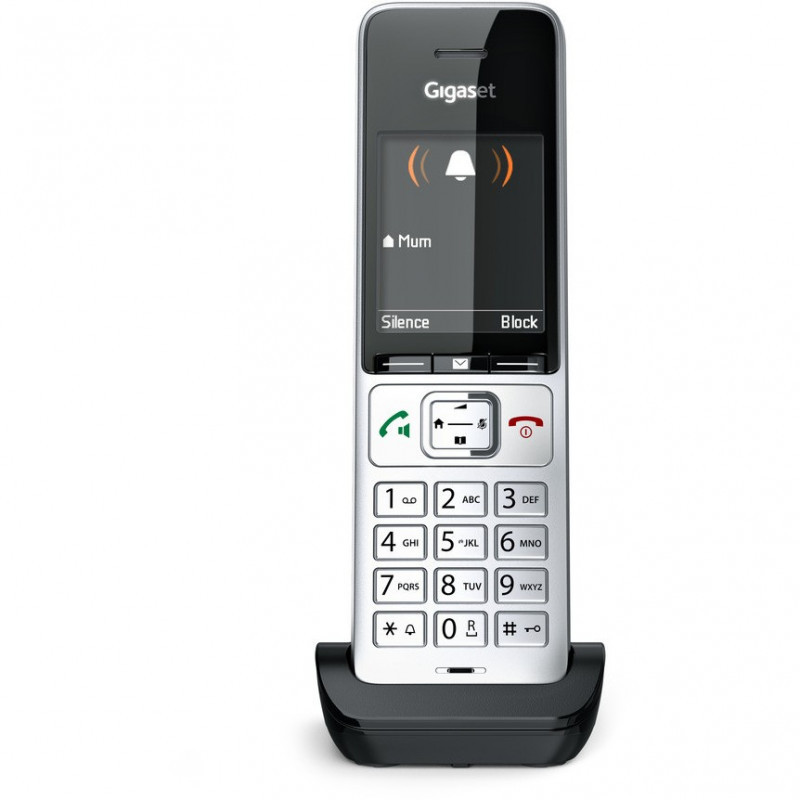 "Gigaset COMFORT 500HX. Type: Analog/DECT telephone, Handset type: Wired handset. Speakerphone, Phonebook capacity: 200 entries. Caller ID. Display diagonal: 5.59 cm (2.2""). Product colour: Black, Silver. Number of handsets included: 1"\n"When everything works at the same time: increased convenience when making calls