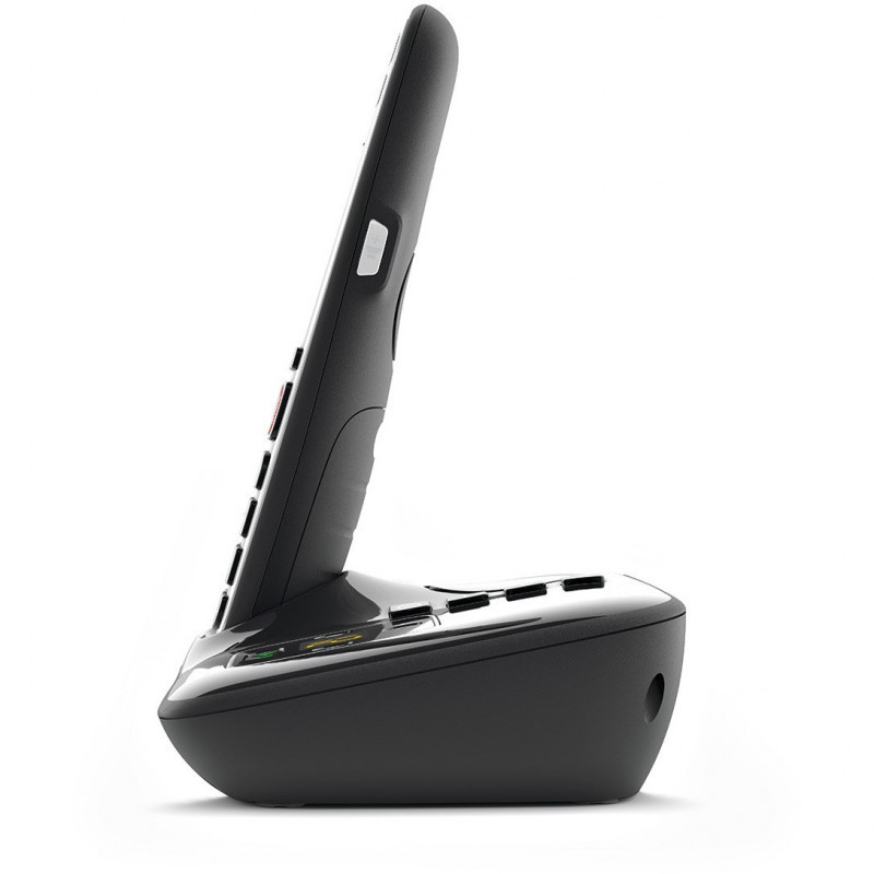 "Gigaset E720A. Type: Analog/DECT telephone, Handset type: Wireless handset. Phonebook capacity: 200 entries. Caller ID. Display diagonal: 5.59 cm (2.2""). Short Message Service (SMS). Product colour: Black. Number of handsets included: 1"\n"Safe and secure: call protection with more.