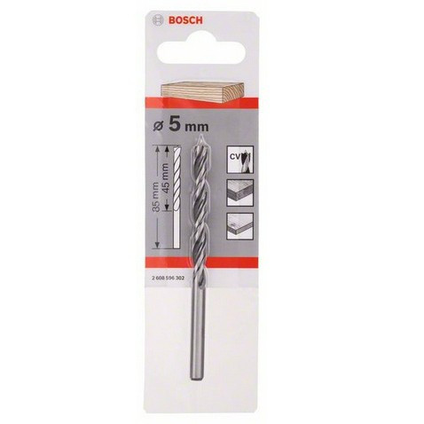 "Bosch Standard brad point drill bit. Proper use: Drill, Drill bit type: Spur (brad point) drill bit, Drill bit diameter: 5 mm. Number of drill bits: 1 pc(s)"\n"- Suitable for hard and soft wood