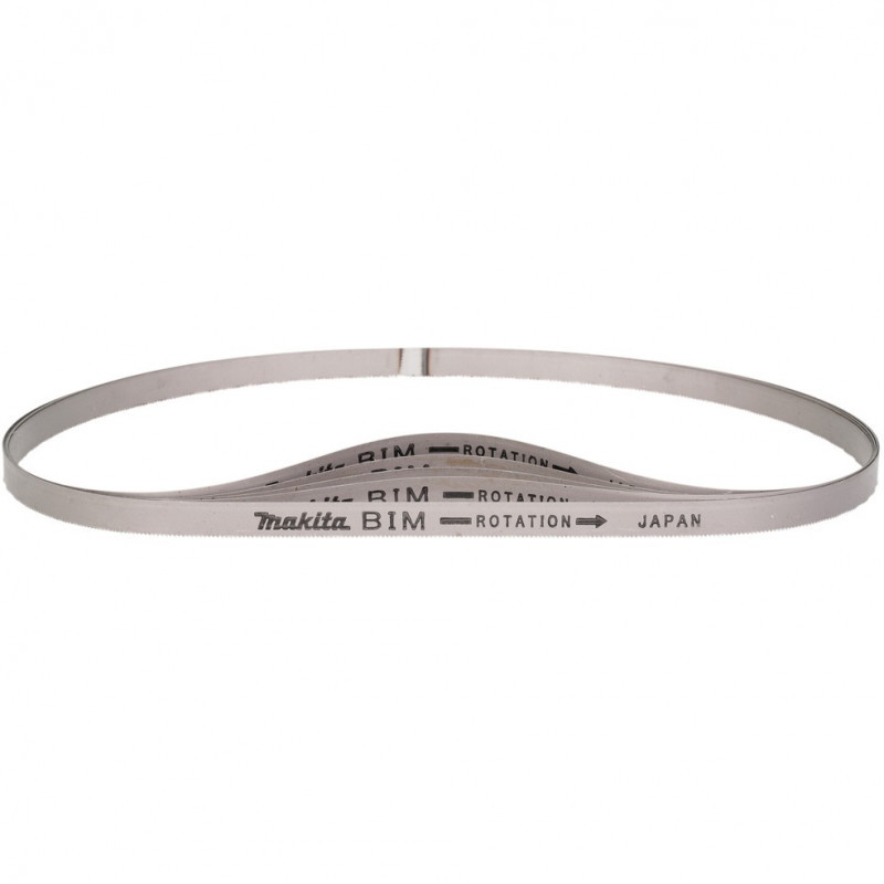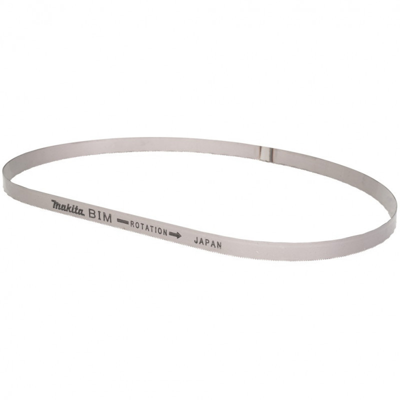 "Makita B-40559. Product type: Scroll saw blade, Suitable for materials: Cast iron, Cast steel, Non-ferrous metal, Stainless steel, Blade material: Bimetal. Overall length: 83.5 cm. Quantity per pack: 5 pc(s)"\n"Makita compact portable band saw blades are manufactured using an improved welding process for longer life. The wavy tooth set is designed to cut through various materials including steel and stainless steel efficiently. The bi-metal construction means a longer life for the blade."