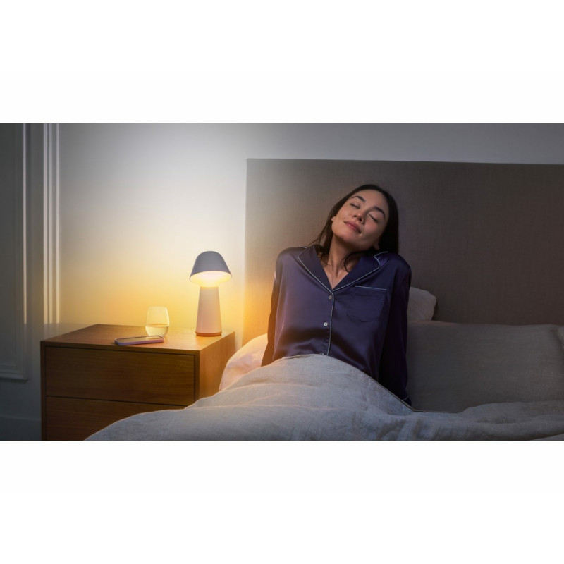 "Philips Twilight sleep and wake-up light white. Type: Smart table lamp, Interface: Bluetooth, Product colour: White. Input voltage: 100 - 240 V, AC input voltage: 100 - 240 V. Cable length: 2 m, Width: 164 mm, Depth: 159 mm. Package width: 209 mm, Package depth: 219 mm, Package height: 388 mm. Quantity per pack: 1 pc(s)"\n
