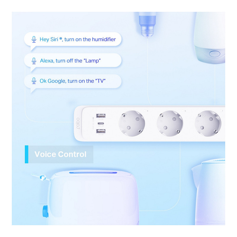 Separately control 3 smart outlets on the power strip via app or voice commands.