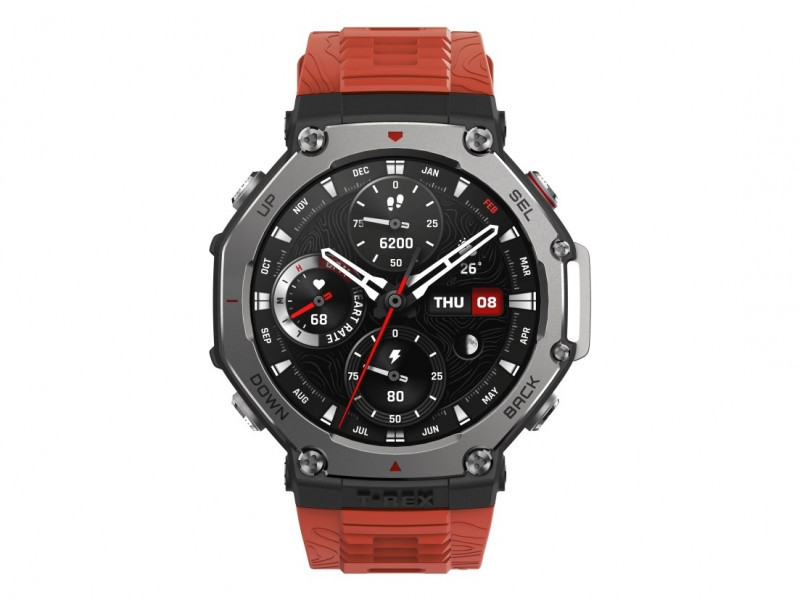 Amazfit T-Rex 3 Lava 3,81 cm (1.5") AMOLED 48.5 mm Skaitmeninis 480 x 480 pikseliai Lietimui jautrus ekranas Juoda, Nerūdijančiojo plieno GPS (palydovinis)