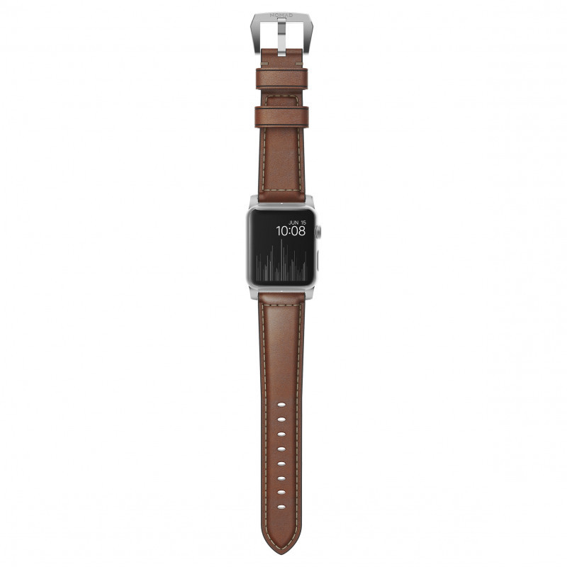 "Nomad NM1A4RST00. Product type: Band, Compatible device type: Smartwatch, Product colour: Brown"\n"Designed to give your Apple Watch a classic, yet bold new look. Made from minimally treated, vegetable tanned leather from one of America's oldest tanneries. The leather is designed to beautifully patina with time, creating a handsome, rich leather strap with a look that is uniquely yours.