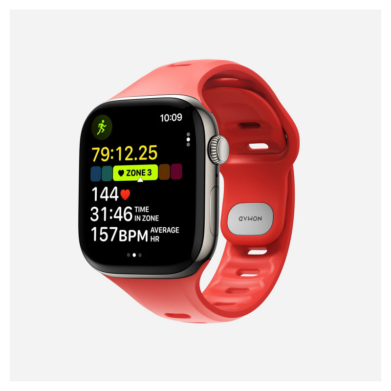 "Nomad Tempo Band. Product type: Band, Compatible device type: Smartwatch, Product colour: Red. Width: 18 mm, Wrist size range: 135 - 175 mm. Quantity per pack: 1 pc(s)"\n"Built from the ground up with versatility and performance in mind, Tempo Band is perfect for everyday users and top-performing athletes alike.v