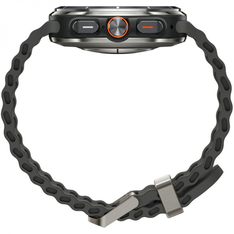 "Samsung Galaxy Watch Ultra . Display diagonal: 3.81 cm (1.5""), Display technology: AMOLED, Display resolution: 480 x 480 pixels, Touchscreen. Processor frequency: 1600 MHz, RAM capacity: 2000 MB, Flash memory: 64 GB. Wi-Fi. GPS (satellite). Battery capacity: 590 mAh. Weight: 60.5 g. Band colour: Black, Band size: One Size. Operating system installed: Wear OS"\n