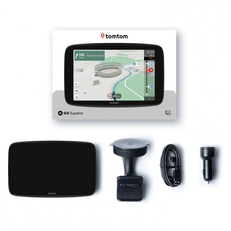 "TomTom GO Superior 6"". Languages support: Multi. Map coverage: All Europe. Display diagonal: 15.2 cm (6""), Display resolution: 1280 x 720 pixels. Internal storage capacity: 32 GB, RAM capacity: 2000 MB. Form factor: Fixed, Product colour: Black"\n"Effortless Wi-Fi® updates