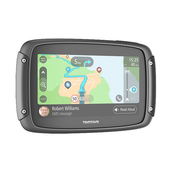 "TomTom Rider 550 Premium Pack. Languages support: Bulgarian, Czech, Danish, Dutch, Estonian, Finnish, French, German, Greek, Hungarian, Italian,.... Map coverage: All Europe. Display diagonal: 10.9 cm (4.3""), Display resolution: 480 x 272 pixels. Storage media type: Flash, Compatible memory cards: MicroSD (TransFlash), Internal storage capacity: 16 GB. Form factor: Fixed, Product colour: Black, International Protection (IP) code: IPX7"\n"Winding and hilly roads