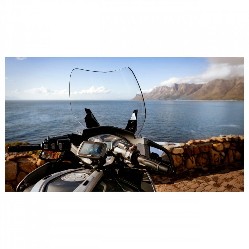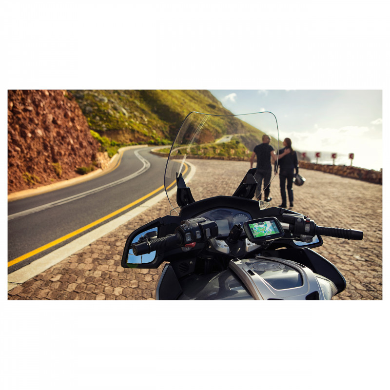 Simply rotate to portrait view to see more of the bends ahead, so you can prepare for your next turn. The innovative rotating mount of this motorcycle sat nav allows an easy switch between landscape and portrait view."