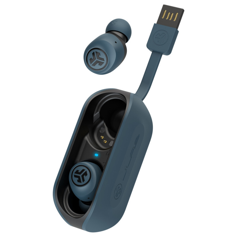 "JLab GO AIR True Wireless Earbuds - Navy. Product type: Headphones. Connectivity technology: Wireless, Bluetooth. Recommended usage: Music. Headphone frequency: 20 - 20000 Hz. Wireless range: 10 m. Weight: 43.5 g. Product colour: Navy"\n"GO Air True Wireless Earbuds are our smallest fit ever. Offering 20+ hours of total playtime, 5 in the bud with 15 extra in the charging case, plus integrated charging cable. GO Air features touch controls and dual connect, allowing the earbuds to be used independently. Custom EQ3 Sound allows you to choose the sound to match your personal preference between: JLab Signature, Balanced and Bass Boost modes – without an app. Auto on and connect so you can listen and sync straight out of the case.