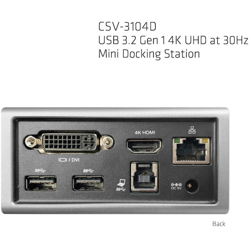 "CLUB3D USB 3.2 Gen 1 4K UHD at 30Hz Mini Docking Station Ultra slim Design. Connectivity technology: Wired, Host interface: USB 3.2 Gen 1 (3.1 Gen 1) Type-A, Headphone connectivity: 3.5 mm. Ethernet LAN data rates: 10,100,1000 Mbit/s. Product colour: Black, Silver, Maximum digital resolution: 3840 x 2160 pixels, LED indicators: Power. Power source type: DC, Output voltage: 12 V, Output current: 3 A. Windows operating systems supported: Windows 10 Education, Windows 10 Education x64, Windows 10 Enterprise, Windows 10 Enterprise x64,..."\n"The Club 3D USB 3.0 4K UHD Mini Docking Station with brushed aluminum design, allows you to expand the outputs of your laptop or ultrabook so it can be used as a traditional desktop PC.