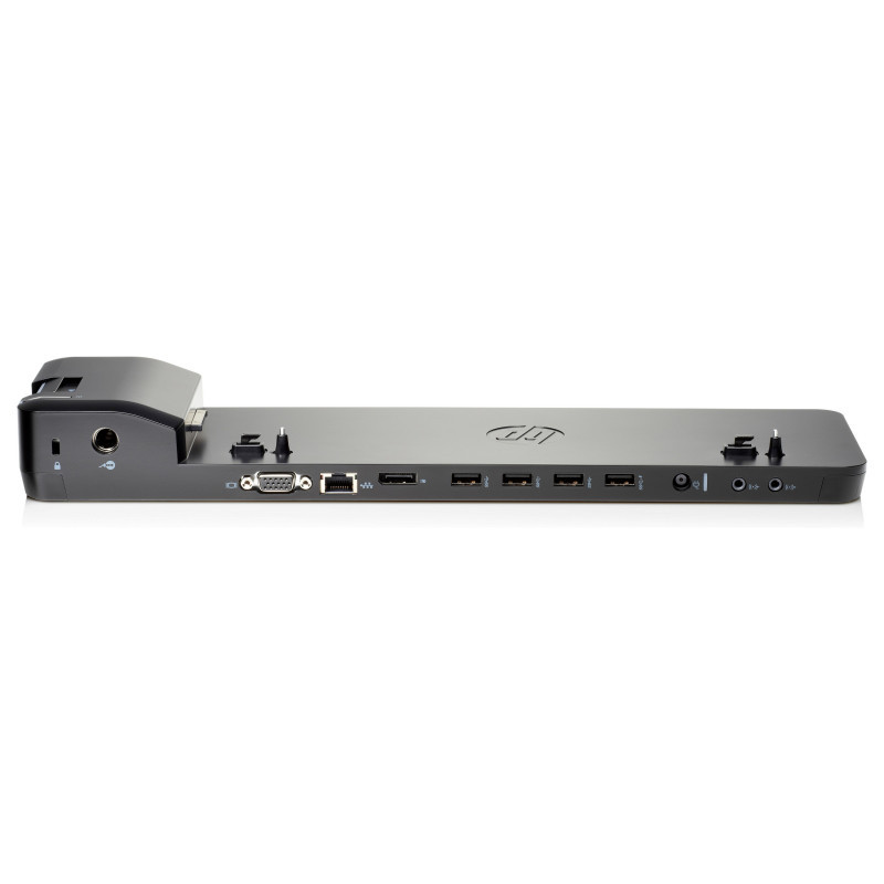 "HP UltraSlim Docking Station. Connectivity technology: Docking. Product colour: Black, Compatibility: HP Elitebook 820 G1 Notebook PC; HP Elitebook 840 G1 Notebook PC; HP Elitebook 850 G1 Notebook PC;..., HP segment: Business. Width: 44 mm, Depth: 368 mm, Height: 107 mm"\n"Quickly and easily expand your display, network, and device connectivity to customize an always-ready workspace with the HP 2013 UltraSlim Docking Station, a simple one-click, slide-in side dock for select ultraslim HP EliteBook Notebook PCs.• Enjoy legacy and future compatibility with your choice of video devices with two DisplayPort ports and one VGA port. Get online quickly with the Ethernet/LAN port. Line in and line out supports all of your audio needs.