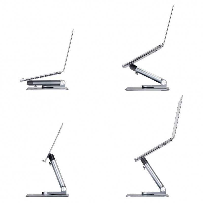 This rotating laptop stand raises laptops to a more natural viewing position. A compact and ergonomic solution for improving workspace comfort. Ideal for desks at home, in the office, or on the go.