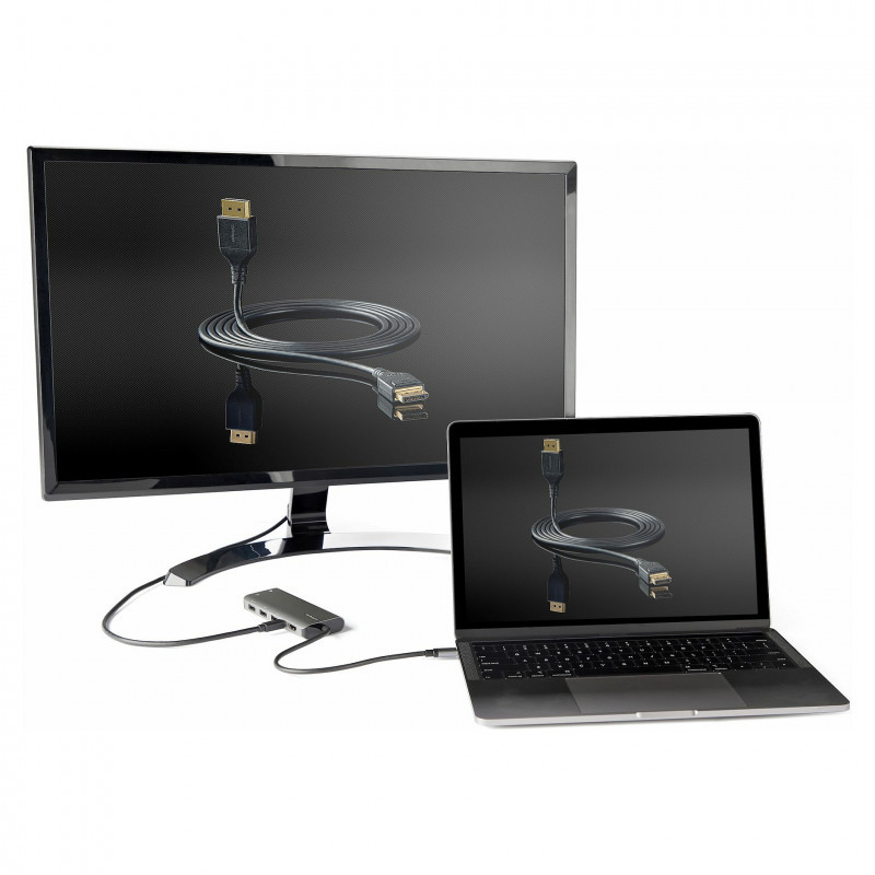 This USB-C multiport adapter with DP 1.4 Alt-Mode supporting 4K 60Hz HDMI® and mini DisplayPort turns your MacBook Pro, Dell XPS, or other USB-C™ laptops or tablet into a workstation, anywhere you go. The USB Type-C multiport adapter provides 4K HDMI or mDP video output, three USB 3.2 Gen 2 Type-A (10Gbps) ports including one BC 1.2 charge port; and one USB-C port (10Gbps), all through one connection to your laptop's USB-C or Thunderbolt 3™ port. Plus, it offers advanced charging through USB Power Delivery 3.0 and an extra-long attached 12-inch (30 cm) host cable for an extended reach to offer more set up flexibility.