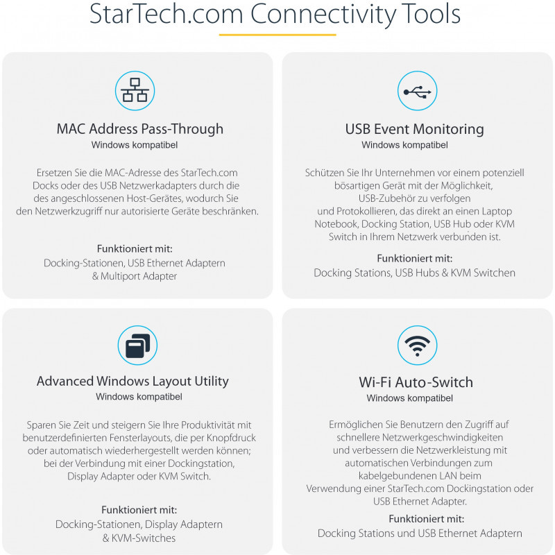 Developed to improve performance and security, StarTech.com Connectivity Tools is the only software suite on the market that works with a wide range of IT connectivity accessories. The software suite includes: