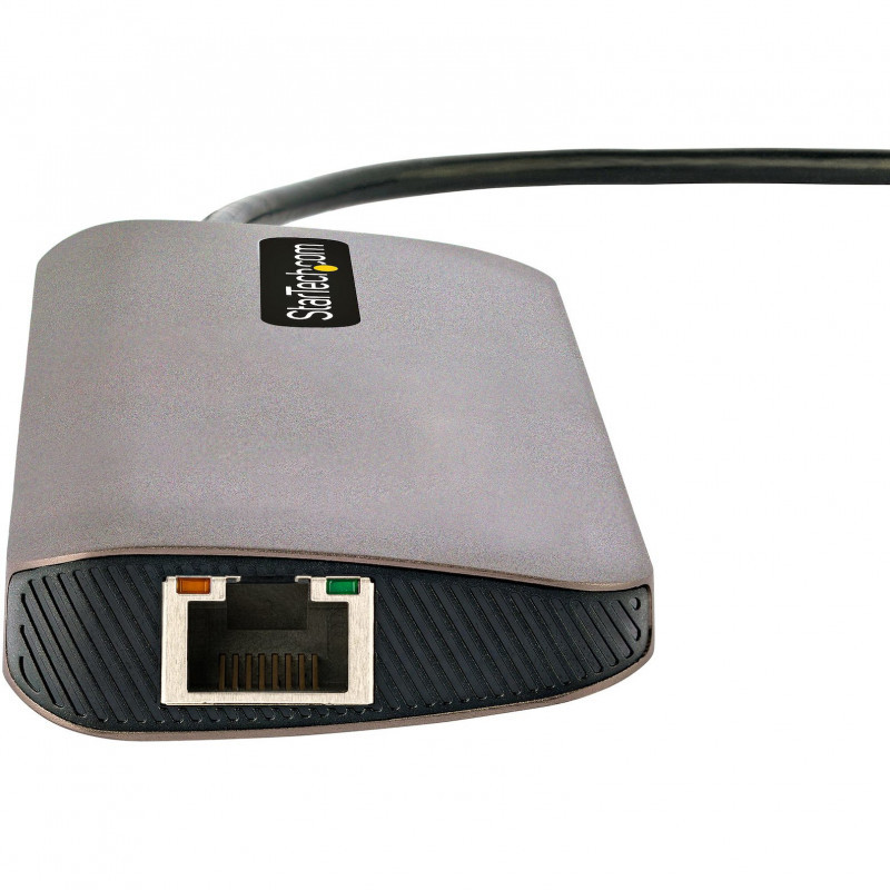 "StarTech.com USB C Multiport Adapter 4K 60Hz HDMI Video, 3 Pt 5Gbps USB-A Hub, 100W USB Power Delivery Pass-Through/GbE/SD/MicroSD, 12""/30cm Cable, Travel Laptop Docking Station. Connectivity technology: Wired, Host interface: USB 3.2 Gen 1 (3.1 Gen 1) Type-C, USB Power Delivery up to: 100 W. Ethernet LAN data rates: 10,100,1000 Mbit/s, Networking standards: IEEE 802.3, IEEE 802.3ab, IEEE 802.3u. Product colour: Grey, Compatible memory cards: MicroSD (TransFlash), SD, Data transfer rate: 5 Gbit/s. Windows operating systems supported: Windows 10, Windows 10 Education, Windows 10 Education x64, Windows 10 Enterprise, Windows 10..., Mac operating systems supported: Mac OS X 10.11 El Capitan, Mac OS X 10.12 Sierra, Mac OS X 10.13 High Sierra, Mac OS X 10.14..., Mobile operating systems supported: Android, iPadOS. Width: 112 mm, Depth: 50 mm, Height: 12 mm"\n"Portable Docking Station | Mac & Windows® | 4K 60Hz | GbE | Thunderbolt™ 3 & 4 Compatible