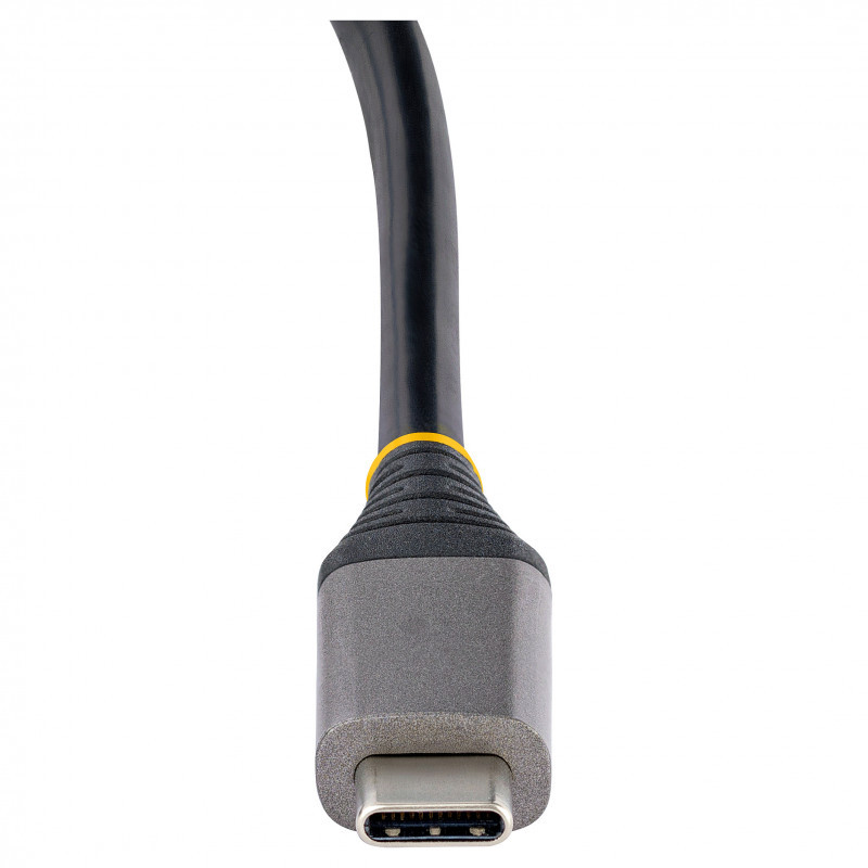 "StarTech.com 4-Port USB-C Hub, 4x USB-C Ports, USB 3.2 Gen 2 (10Gbps) - Portable USB C Hub with 100W Power Delivery Pass-Through - USB Type C Hub w/ 12.6in/32cm Wrap-Around Cable. Connectivity technology: Wired, Host interface: USB 3.2 Gen 2 (3.1 Gen 2) Type-C, USB Power Delivery up to: 100 W. Product colour: Grey, Data transfer rate: 10 Gbit/s, Housing material: Plastic. Power source type: USB, Power consumption (typical): 15 W. Width: 60 mm, Depth: 135 mm, Height: 20 mm. Package width: 142 mm, Package depth: 170 mm, Package height: 30 mm"\n"USB 3.2 Gen 2 (10Gbps) | 4x USB-C | 100W Power Delivery Pass-Through | Built-in 12.6 in (32 cm) Wrap-Around Cable