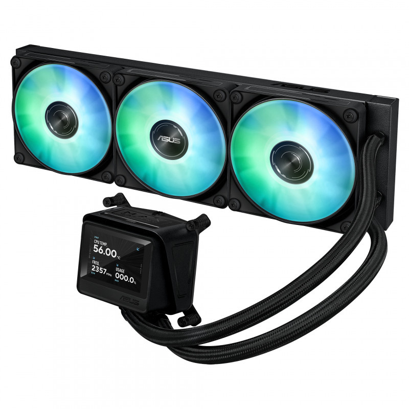 "ASUS MAX GAMING LC 360 ARGB LCD. Type: All-in-one liquid cooler, Fan diameter: 12 cm. Product colour: Black"\n"COOLING WITH A VISION