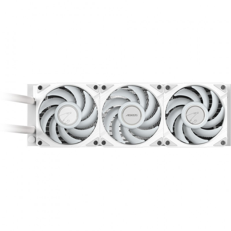 "GIGABYTE AORUS WATERFORCE II 360 ICE AIO Liquid CPU Cooler - 3x120mm ARGB Fans, slide-in interlocking mechanism, DAISY-CHAIN, Intel LGA 1851 and AMD AM5 Compatible. Type: All-in-one liquid cooler, Fan diameter: 12 cm, Maximum air pressure: 2.93 mmH2O. Product colour: White"\n"Experience superior cooling performance with GIGABYTE CPU coolers. Designed with advanced thermal solutions and high-quality components, our coolers ensure optimal temperature regulation for your processor. From air to liquid cooling solutions, GIGABYTE offers reliability and efficiency, allowing you to push your CPU to its limits with confidence and peace of mind."