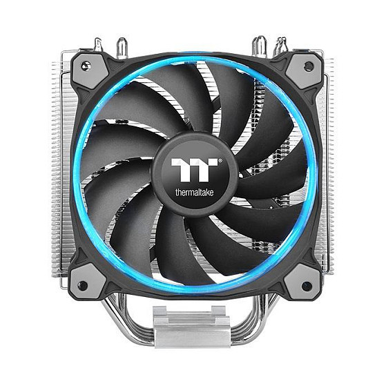 "Thermaltake Riing Silent 12 RGB Sync Edition. Type: Cooler, Fan diameter: 12 cm, Rotational speed (min): 300 RPM, Rotational speed (max): 1500 RPM, Maximum air pressure: 1.23 mmH2O, Bearing type: Hydraulic. Width: 140 mm, Depth: 159 mm, Height: 74 mm. Product colour: Black, Metallic"\n"Riing Silent 12 RGB Sync Edition CPU Cooler