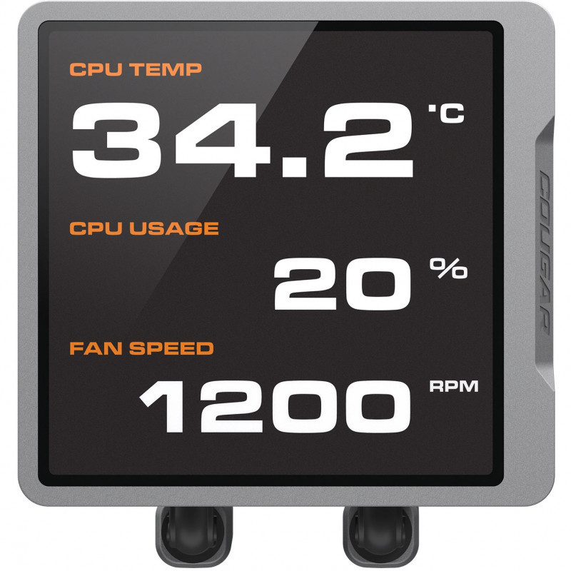 "COUGAR CPU Water Cooling Poseidon Vistek Pro 360, ARGB, Black. Type: All-in-one liquid cooler, Fan diameter: 12 cm, Rotational speed (min): 700 RPM, Rotational speed (max): 2500 RPM, Maximum air pressure: 5.4 mmH2O. Product colour: Black"\n"The Poseidon Vistek Pro ARGB displays high-definition, real-time system monitoring in ultra-crisp on a supersized 3.95-inch IPS TFT LCD display with customizable visuals, boosting superior liquid cooling with instant data insight.