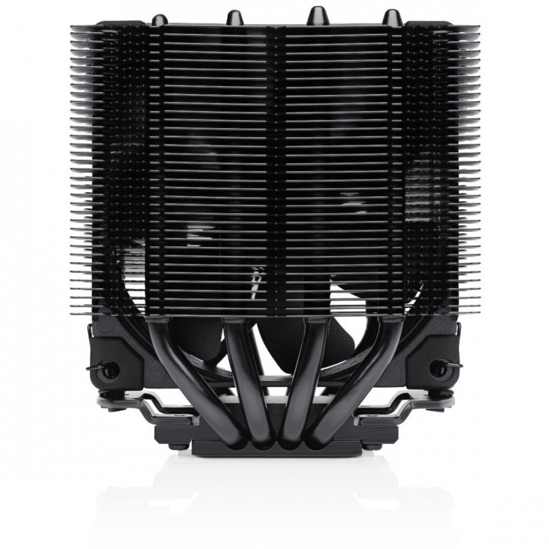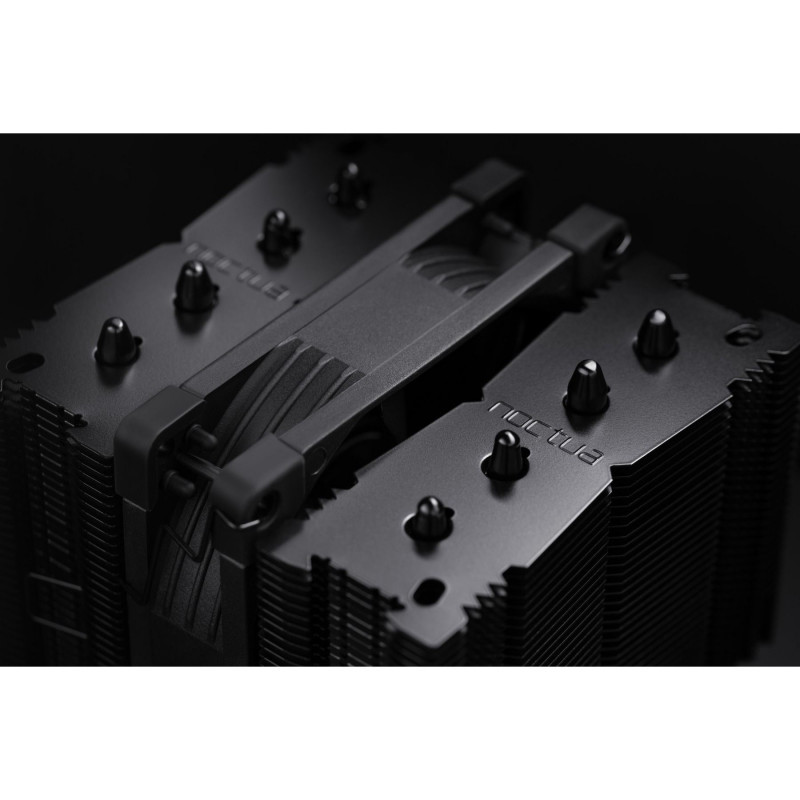 "Noctua NH-D9L CHROMAX.BLACK. Type: Heatsink/Radiator, Fan diameter: 9.2 cm, Rotational speed (min): 400 RPM, Rotational speed (max): 2000 RPM, Airflow: 78.9 m³/h, Bearing type: Self-Stabilising Oil-pressure (SSO) bearing. Voltage: 12 V. Width: 95 mm, Depth: 95 mm, Height: 110 mm. Product colour: Black"\n"The NH-D9L chromax.black is is an all-black version of Noctua’s award-winning NH-D9L compact dual tower CPU cooler that has been designed to provide excellent quiet cooling performance at a height of only 110mm. Its comparably low profile (15mm lower than classic 9cm tower coolers such as the NH-U9S) doesn't only guarantee full 3U compliance but also makes the NH-D9L ideal for compact HTPC and Small Form Factor cases that have airflow paths parallel to the mainboard. Thanks to its 95x95mm footprint, the NH-D9L clears the RAM and PCIe slots on all Intel based and most AMD based ITX mainboards. The included NF-A9 premium fan supports automatic speed control via PWM for outstanding quietness of operation and a second, optional NF-A9 fan can be added for further improved performance in dual fan mode. Topped off with the trusted, pro-grade SecuFirm2™ multi-socket mounting system, Noctua’s proven NT-H1 thermal compound and full 6 years manufacturer’s warranty, the NH-D9L forms a highly compact premium package for space-restricted applications.