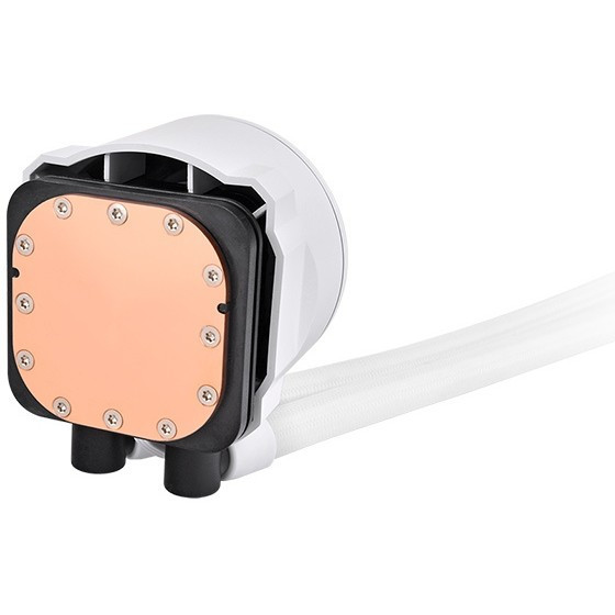 "Thermaltake TH120 V2 ARGB. Type: Liquid cooling kit, Fan diameter: 12 cm, Maximum air pressure: 2.23 mmH2O, Bearing type: Hydraulic. Product colour: White"\n"TH120 V2 ARGB Snow has a new industrial cap with an infinity mirror light design, bringing a new vibe to the TH series. Equipped with one CT120 ARGB White fan, the TH120 V2 ARGB Snow is suitable for small chassis that can fit 120mm AIOs, and for those who seek to control lighting effects through 5V motherboard-controlled software.