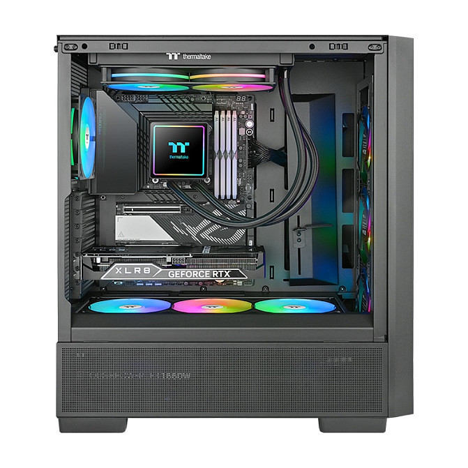 "Thermaltake TH240 V3 ARGB. Type: All-in-one liquid cooler, Fan diameter: 12 cm, Rotational speed (min): 500 RPM, Rotational speed (max): 2500 RPM, Maximum air pressure: 3.86 mmH2O. Voltage: 12 V. Product colour: Black"\n"The TH240 V3 ARGB Sync features a stylish square pump head with infinity mirror effects, along with a detachable top cover for orientation adjustment to match your build. The single-frame fan design achieves superior cable management for easy installation. Paired with high-performance ARGB fans reaching up to 2500 RPM, it delivers exceptional cooling performance.