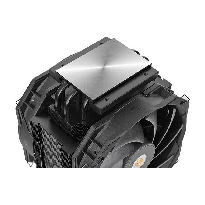 "Thermaltake WAir. Type: Air cooler, Fan diameter: 14 cm, Rotational speed (min): 500 RPM, Rotational speed (max): 1500 RPM, Maximum air pressure: 1.86 mmH2O. Width: 115 mm, Depth: 143.2 mm, Height: 165 mm. Product colour: Black"\n"The WAir CPU Cooler is designed for workstation configurations, supporting Intel LGA4677 and AMD sTR5/SP6 sockets. It features a single-tower dual-fan design, six high-performance heat pipes, and is paired with the redesigned TOUGHFAN 14 Pro, delivering an impressive 500W TDP of cooling power for intensive tasks like 3D rendering and AI computing. Its all-black design merges style and performance, elevating the workstation experience to the next level.