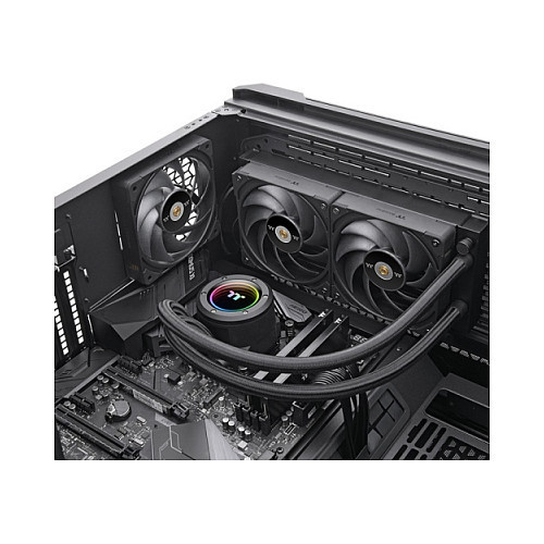 "Thermaltake CL-W418-PL00BL-A. Type: All-in-one liquid cooler, Fan diameter: 12 cm, Bearing type: Hydraulic. Product colour: Black"\n"TOUGHLIQUID 240 EX Pro introduces a new all-black industrial cap with an infinity mirror light design, adding a fresh look to the TOUGHLIQUID series. The AIO is equipped with two high-performance TOUGHFAN EX12 Pro fans, the TOUGHLIQUID 240 EX Pro provides a better PC building experience with the new MagForce 2.0, allowing you to snap the fans together more quickly and ensures a steadier connection!